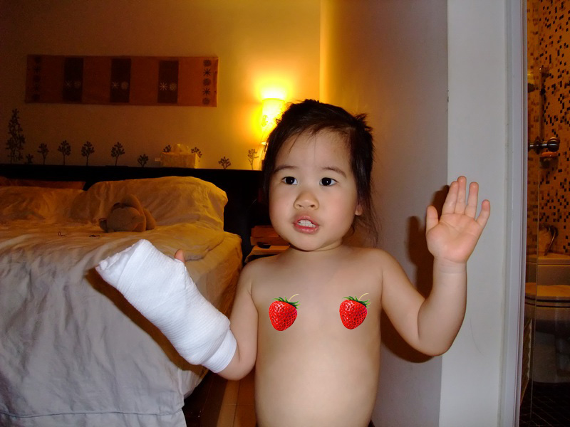 (比了一個月的中指, 護具拿下後,有一天拍照,她很自然的給我比中指。)